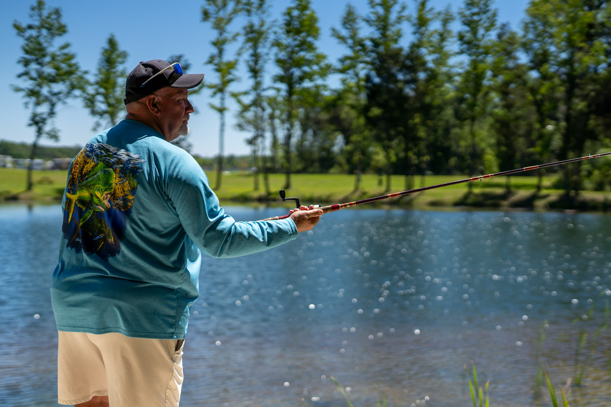 Our gated RV resort has a heated swimming pool and hot tub, pickleball courts, bocce ball, a fitness center, individual private bath/shower rooms, a large laundry facility, and a dog park. We also have a 7-acre catch & release spring-fed lake with a scenic walking trail. Our 12,600 sq ft clubhouse, The Grove, has 7 big screen TVs, tables for games, pool tables, cornhole, darts, a gift shop, a full schedule of daily activities, PLUS a fully stocked bar.